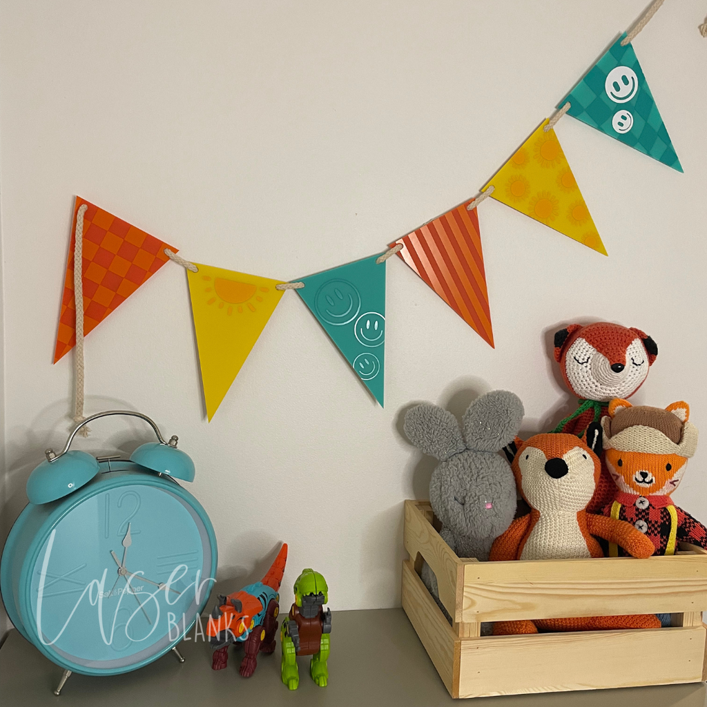 Add a personal touch to your space with our Triangle Bunting Blank. Whether it’s for a kids’ bedroom, a party, your business storefront, or a market stall, this versatile blank is ready for your creativity.